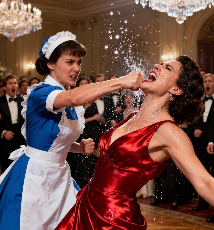 Официантка больше не отступила. Её взгляд изменился — страх исчез. Она сделала шаг вперёд и вдруг сильным, чётким движением ударила женщину-миллионера кулаком, и то, что произошло после этого, повергло в шок всех.